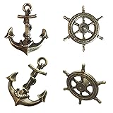 Aimoye Antique Bronze Kitchen Cabinet Knobs Pull - Anchor Rudder Drawer Knobs Furniture Pulls,Antique Brushed Gold Pull, Nautical Sea Theme Home Decor