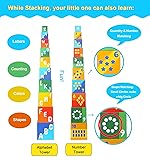 beeqoo 10 Pcs Nesting and Stacking Blocks for Toddlers 1-3 - Cardboard Stacking Cubes with ABC & Numbers - Montessori Educational Learning Toy - Sturdy Toddler Tower Building Set for Kids
