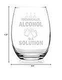 YmeerGifts Technically Alcohol Is A Solution Stemless Wine Glass - Funny Science Teacher Gifts For Women & Men - Gift For Science Teachers & Chemistry Nerds - Etched Sayings, 15oz, Transparent