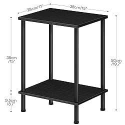 Industrial Design: This industrial side table features a simple, low-key design that can fit any setting. Its minimalist design makes your room more refined and it is always an attracting end table that your friends envy How about the Quality? Reliable! Sizes: 15"L x 11"W x 19.7"H. The sturdy particleboard panel is tightly connected to the strong metal legs, so this bedside table can stand beside you year after year Multi- Function: It is very suitable to be placed next to the sofa to put snacks and remote control on hand. It can also hold phones and eye masks when putting the table beside the bed. Or put it in the study room to collect documents and office supplies, keep everything you need at your fingertips Stable Structure: The coffee table comes with adjustable feet to keep it stable even on uneven ground. In addition, the high-quality particleboard and metal frame give this bedside table the characteristics of durability Easy as ABC - No Tools: The aseembly may take 5 minutes without requiring tools. Even a kid can accomplish. And if you buy set of 2 end tables, you will get a bookcase according to your needs!