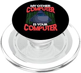 Still searching for computer security, software engineer or coding designs? Make a statement with this My Other Computer Is Your Computer design. Perfect for the cybersecurity student or web developer. MagSafe base attaches the PopGrip to your MagSafe-compatible case (not included). Printed top is swappable with other compatible PopGrip models. Just press flat, turn 90 degrees until you hear a click and remove to swap. Compatible with iPhone 12, iPhone 13, and iPhone 14 models. Works best with smooth, hard MagSafe compatible case. Wirelessly charge your iPhone by sliding off the magnetic PopGrip and setting your iPhone on a wireless charger.
