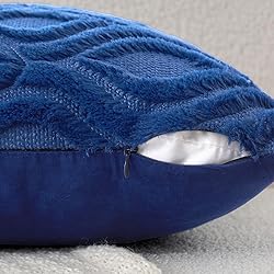 MIULEE Dark Blue Throw Pillow Covers 16x16 Inch, Soft Winter Plush Faux Wool Couch Pillow Covers Set of 2 Decorative Farmhouse Boho Throw Pillows for Sofa Living Room Bed