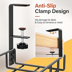 👍【Qualified Organizer You Need 】 Cable Management trays are made of sturdy metal, this fully welded and powder coated under desk tray is not easy to rust and accumulate dust. No worry to put this computer cable management under to your desk for a long time. Hold up to 10lbs and 15.7L x 4.7W x 5.9H (40 x 12 x 15 cm) at each. Ideal cord organizer for desk within 0.4" to 2.4" thick. 👍【No Damage to Desk】 Unlike others screw installation, our no drill under desk cable management tray can be hanged directly to desk frames and removed easily as your need. Cable trays come with anti-scratch mats, effectively avoid the clip to scratch the desktop. Prefect to install with clamp on the any wood, glass, or any material of your desk. 👍【Unique-designed Management】The wire management trays has two opening sides, which makes set up power strips more convenient and no need to unplug before install. Our wire organizer can be mounted inward or outward of your desk as required. And will excellent fit in either narrow edge desk or desks against the walls. Great solution of collecting and organizing wires. 👍【Save Storage Space】 Hollow curved design cable management tray under desk can organizes any data cables, power cords, outlet strips off the floor. Giving you a total wire management under desk. No more mess and no more hanging or tangled cords. You can not only hide wires from your feet, but also put office supplies in them to to keep your desks and floors clean and tidy. 👍【What You Will Get 】Great value under table cable management kit contains 2 cable trays, 4 cable clips and 8 cable ties. When you place 2 racks align, you will have a extra long 31.4" under desk cable management tray. Suitable for long power strips and multiple devices. This computer cord organizer is great for you not only around your desk table, but also good to be used in the kitchen and outdoors. Tidy and beautify your office and home.