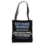 Perfect for software engineers and programmers who revel in the art of coding. This design humorously defines what it means to be a software engineer, combining technical prowess with a love for coding, appealing to those passionate about their craft. Ideal for tech meetups, coding workshops, or casual office days. It's a great conversation topic, showcasing a light take on the complexities and joys of software engineering. 16” x 16” bag with two 14” long and 1” wide black cotton webbing strap handles. Made of a lightweight, spun polyester canvas-like fabric. All seams and stress points are double-stitched for durability, and the reinforced bottom flattens to fit more items and hold larger objects. Spot clean/dry clean only.