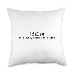 100% Polyester It's funny because it's true! Get this funny programming design for your programmer and coder friends! This !false programming design makes a great for all the computer science and computer engineering and software engineering students! 100% spun-polyester fabric Double-sided print Filled with 100% polyester and sewn closed Individually cut and sewn by hand Spot clean/dry clean only