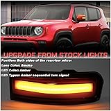 KEEGTBOX Smoked Lens Sequential Amber LED Side Mirror Marker Lights Compatible with Jeep Renegade SUV 2015-2022 Towing Mirror Turn Signal Indicator Lamp Assembly (Rear Side mirror light)