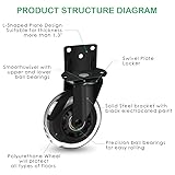 8T8 Side Mount Caster Wheels 3 Inch L Shaped Plate Swivel Casters Heavy Duty Set of 4, Silence Rubber Wheels for Furniture, Kitchen Cabinet, Baby Bed, Table, Loading Capacity 600 Lbs