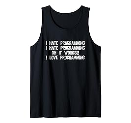 - I hate programming. I hate programming. oh it works! I love programming design in a distressed vintage design. Programmer humor design for programming nerds, software engineers, hackers, and geeks. This I Hate Programming It Works - Funny Programming Coding Coder item is designed by Funny programming and hacking designs.