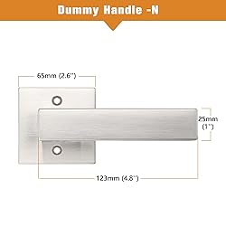 【Specifications】: Heavy Duty & Durable; Material: Zinc Alloy. NOTICE: The Brushed nickel Dummy(Exposed Screws) is different from Dummy Handle. This Heavy duty handleset is non-functioning handle with exposed screws on the exterior lever 【Both Installed on inside and outside】Less accessories (only dummy door handles and screws)and could be installed from inside and outside of a door 【Dimensions】Lever Length: 4.84"(123mm); Rosette Diameter: 2.56"(65mm); Universal handing; fits both right handed and left handed doors 【Easy to Install】: It easily installs in minutes with just a screwdriver, and easy to swap out with all accessories included 【Application】: Dummy door lever for use on interior doors or closet doors or pantry and best a decorations for your home. This 1/2 dummy will give your home or rental house a new look,used in contemporary/modern style room,transitional traditional Victorian Colonialism home décor
