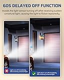 [Wireless Light Sensor] With built-in advanced dusk to dawn sensor, the transmitter automatically sends on/off signals to the lamp head; split design allows the distance between the light sensor transmitter and the lamp head to reach up to 50 meters [6 Time Setting Modes] The programmable dusk to dawn light control socket can automatically turn on the lights at dusk and turn them off after 1, 2, 4, 6, 8, or 10 hours, helping to illuminate the night while avoiding unnecessary waste and meeting your needs [Easy Installation] No wiring and programming needed; simply screw the bulb into the socket and connect the fixture above; Note: make sure the light sensor faces natural light to ensure the sensor captures natural light information and prevent malfunction [Off Delay Function] This dusk to dawn sensor socket is equipped with off delayed function to prevent flickering caused by the photocell detecting non-natural light sources; when the photocell detects light, the light stays on for 60 seconds or more before automatically turning off [Standard E26/E27 Base] Compatible with E26/E27 base incandescent ≤ 100W, CFL/LED ≤ 60W, and halogen bulbs, our automatic dusk to dawn light bulb sockets are perfect for porch lights, front door lights, garage door lights; requires 2 AAA batteries (not included); NiMH batteries recommended for longer life