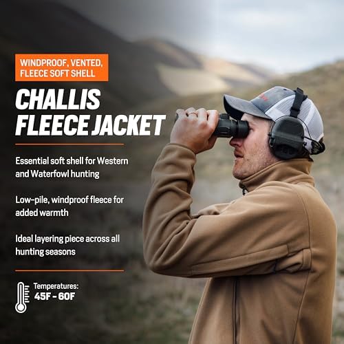 First Lite Men's Challis Fleece - Windproof Soft Shell Camo Hunting Jacket, Hoodless Thermal Layer Hunting Gear For Men