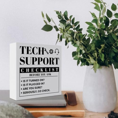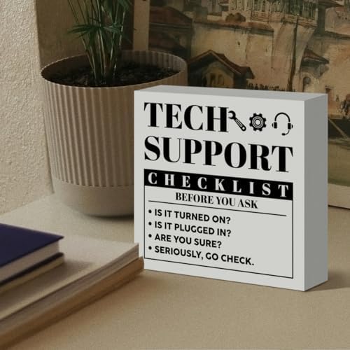 Funny Tech Support Gifts for Women Men, It Support Engineer Computer Programmer Christmas Birthday Gifts IT Office Cubicle Desk Decor Wooden Sign, Checklist Before You Ask
