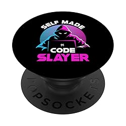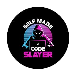 Embrace your inner self-made code slayer with this coding-inspired design. Perfect for those passionate about bootstrapping, IT, and independent hacking. Show your love for indie hacking at any casual event or coding meet-ups. Makes a hilarious gift for family, friends, and fellow developers who enjoy a dash of humor with their code. Funny Self-Made Code Slayer design. Adhesive backing attaches the PopGrip to your case or device. Will not stick to silicone, leather, waterproof, or highly textured cases. Works best with smooth, hard, plastic cases. Not compatible with wireless charging Printed top is swappable with other compatible PopGrip models. Just press flat, turn 90 degrees until you hear a click and remove to swap.