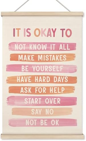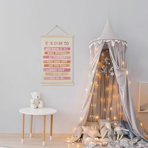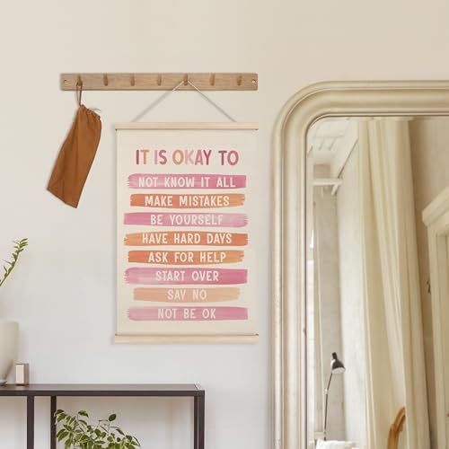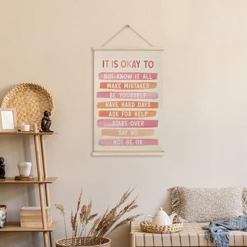 HRQKO It is Okay Pink Boho Poster Hanger Frame, Pink wall decor, Inspirational Posters Wall Art with Wooden Frames, Mental Health Wall Hanging Banner for Therapy Office Girls Room Nursery, 16x24 inch