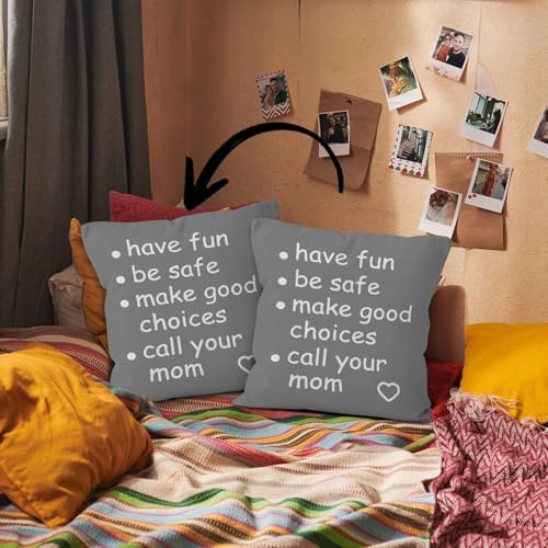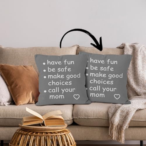 HIWX Funny Quote Have Fun Be Safe Make Good Choices Call Your Mom Black Decorative Throw Pillow Cover, Graduation Gifts for Sofa Bed Room Home Children Dorm Decor 18 x 18 Inch Pillow Case(Gray)