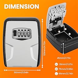 - Why we need a secure key storage lock box? With a lock box with key, you don't need to carry your locker locks anymore or hide them under the carpet, flowerpot or doormat, only 4-digit combination to get into the house; It is really convenient for daily outdoor sports, friends, relatives and latchkey kids, home services at given time, emergency entry, real estate business. Tips: Please make sure record your password by taking a photo or note after every time reset the password, otherwise, you have no way to get it back. It's NOT recommended to use combination such as "0-0-0-0", otherwise it might be easily cracked. Please keep the shutter door closed for weather, dirt and grime resistance. It is recommended to rotate the dials weekly to keep them work properly. Features : This key lock box is made of zinc alloy, and it is providing powerful resistance to cutting, hammering, and sawing. And it is non-corrosive, durable, and weatherproof. The 4-digit combination provides 10,000 unique choices, which makes the key storage box have high security for protect your keys. And access to your house keys for school kids, friends, home service, and emergency entry. It is also a perfect solution for key storage in the real estate business. You can also use this key lock box in the warehouse, garage, office, etc, and no need to buy several keys for one lock if many different persons need to open the lock. Specification : Material: Zinc Alloy Color: Black + Grey Install Method: Wall Mounted Overall Size: 3.54*1.58*4.73 inches / 9.0*4.0*12.0 cm Internal Size: 2.64*1.38*3.54 inches / 6.7*3.5*9.0 cm Package Included: 1 x Key Lock Box 4 x Heavy-duty screws 4 x Plastic expansion plugs 1 x User manual