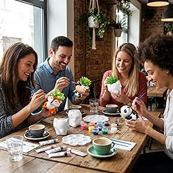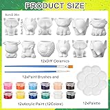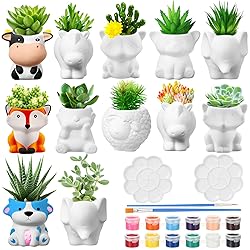 Complete Painting Kit: DIY ceramic animal flower pot set is a comprehensive craft ceramic painting kit, including 12 animal ceramic flower pots ( 9 different animals, plants not included), 12 color paints, 12 sets of brushes and 12 palettes; Enough to meet your DIY painting needs; You can also share these painting pot kit with your family, friends so that everyone can enjoy the joy of DIY together Quality Materials and Size: crafted from quality ceramic, each paintable animal succulent planter is sturdy and resistant to deformation; Features drainage holes at the bottom for excess water, promoting airflow and plant growth; Each unpainted flower pot measures approximately 3.14 inches in height and 2.36 inches in width, ideal for succulents or other small plants without taking up too much space Easy to Paint: whether you're a beginner or a seasoned artist, our fun ready to paint ceramics planter is easy to paint; No prior painting experience needed; Transform each flower planter into a unique masterpiece; Besides serving as planters, they can also be applied as pen holders or charming home decor, adding a touch of whimsy to any space Enjoy the DIY Experience: unleash your creativity by painting these smooth white ceramic planters according to your imagination; Discover your hidden artistic talents and enhance their skills while enjoying the satisfaction of creating something meaningful and practical Versatile Use: these DIY ceramic succulent pots are nice for succulents, cacti and other small potted plants; Additionally, the ceramic flower pot can double as organizers for office supplies, keeping your workspace tidy; You can display these adorable planters on windowsills, desks, shelves or living room mantels, making them an ideal gift for friends, and DIY enthusiasts