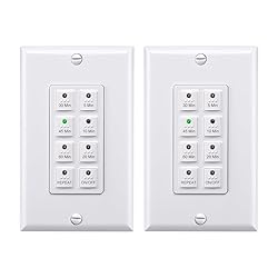 BN-LINK Countdown Digital Wall Timer Switch for Exhaust Fan with Push Button 5-10-20-30-45-60mins, Bathroom Fan Light Switch Timer Indoor, Neutral Required, Wall Plate Included, White, 2 Pack