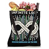 Discover our Infinite Loop design collection featuring endless loop, programming humor, and recursion graphics. Perfect for coders, developers, and geeks. Show off your debugging skills, loop iteration expertise, and love for coding jokes. Celebrate your coding passion with our Infinite Loop graphics! From while true loop and infinite loop coder designs to funny coding and infinite loop memes. Great for programmers, developers, and enthusiasts who appreciate debugging and recursion 16” x 16” bag with two 14” long and 1” wide black cotton webbing strap handles. Made of a lightweight, spun polyester canvas-like fabric. All seams and stress points are double-stitched for durability, and the reinforced bottom flattens to fit more items and hold larger objects. Spot clean/dry clean only.