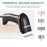 【Prominent Scanning Ability】32Bit CPU super decoding ability that the speed up to 300/sec, Scanning angle: Inclination angle 55°, Elevation angle 65°. barcode scanner stands out on the market for its fast accurate reading speed, with advanced sensor, which can instantly capture 1D codes from paper and product. 【Plug and Play】 The USB barcode scanner with a USB cable for connection, no need to install any driver and software. compatible with Windows, Mac, Android, and Linux, and works with Quickbook, Word, Excel, Novell, and all common software. 【2 Types of Scanning Modes】1D aser barcode scanner equipped with key trigger scanning and continuous scanning mode, we can choose different scanning ways according to work needs. The barcode scanner, storage upload mode helps to widely used in supermarkets, store, bookstore, shopping malls, retails, logistics, warehouse and others for file management, inventory tracking and point of sale. 【Adjustable Stand】The wireless barcode scanner with stand, we can freely to adjust the best scanning angle as need. What's more continuous scanning mode sensor, we can easily realize handsfree scannning, no need to hold the wireless barcode scanner, release our hands. 【Support 1D Type】Code11, Code39, Code93, Code32, Code128, Coda Bar, UPC-A, UPC-E, EAN-8, EAN-13, JAN.EAN/UPC Add-on2/5 MSI/Plessey, Telepen, Interleaved 2 of 5, Industrial 2 of 5, Matrix 2 of 5 ; and even deformed,smudged, damaged, fuzzy, reflective ones. Note: This scanner only supports printed 1D barcodes and does not support scanning any 1D codes or QR codes from phone or computer screens; Compatible with most POS systems except those requiring proprietary hardware integrations or direct app-level integration.