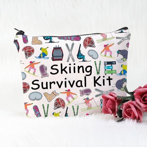 POFULL Skiing Survival Kit Makeup Bag for Women - Winter Sport Cosmetic Bag for Ski Lovers and Team Gifts