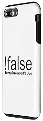 This design is perfect for programmers and coding enthusiasts who appreciate clever humor. The "!false" expression, common in programming languages, humorously points to true. It's a witty way to show your coding knowledge and get a laugh from developers. Ideal for tech professionals and software engineers, bring a touch of humor to the world of coding. The phrase "funny because it's true" resonates with those who understand the logic behind it, making it a great conversation starter in tech communities. Two-part protective case made from a premium scratch-resistant polycarbonate shell and shock absorbent TPU liner protects against drops Printed in the USA Easy installation
