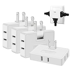 - ★4 Pack 3 Way Flat outlet adapter for Behind Furniture- White, Type A★ MIKWOAB flat plug adapter is a Trusted Brand in outlet adapters. 180 degree swivel wall outlet rotates to connect cords facing up, down, or out in front; Adjustable rotating outlet adapter can be positioned to not block the top outlet of a single-gang AC receptacle. The outlet expander are small enough that you can fit them side-by-side on a power strip.It fits in a small space and provides many plugs for nightly charging or anything else. Compact design makes it easier to carry and charge for multiple devices during travel or indoor. Preparing this wall plug expander by your side can make yourself and others more convenient. Allows you to easily slip this 3 way plug adapter into your laptop or carry-on bags. Perfect to use in your home or office to power lamps, tablets, cell phones, chargers, printers, and also easy to carry this dual outlet adapter during the traveling.