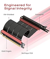 Verified Compatibility — Built for vertical GPU mount and standard layouts across towers, SFF/ITX sandwich cases, open benches, and water-cooled rigs. Fully backward-compatible with PCIe 4.0 and validated on ASUS WS WRX80SE WiFi II and WRX90E Gen5 boards. Ready for next-gen cards like RTX 5090 and RX 9070. Use this PCIe 5.0 riser cable to place the GPU exactly where airflow and aesthetics demand—without giving up stability. Gen5 x16 Performance & Shielding — Delivers full 128GB/s on PCIe 5.0 x16 with tuned impedance, premium conductors, and multilayer shielding to suppress crosstalk and EMI. The AVA design targets clean eye margins under load and tight bends, making it a dependable PCIe Gen5 riser cable for high-FPS gaming, AI, and storage workflows. Replace Gen 3 and Gen 4 PCIe cables while preserving upgrade headroom for future GPUs. Showcase Aesthetics, Improve Cooling — Move the card where it breathes. A vertical mount GPU clears intake for thick shrouds & radiators, reducing heat soak & noise while giving builds a clean, gallery-style look. Route like a tidy GPU extension cable & keep clocks steady thanks to robust shielding & low-loss geometry. Builders report good quality & that it simply works great when paired with the right bracket and case layout. View Product Description to ensure Compatibility with your PC case. Installation Instructions — Measure with a string from the motherboard slot to the GPU PCB to pick the correct span. Seat connectors fully until latched; Fold & Flex in any way. Use standoffs and support brackets if the chassis requires it. If fit seems tight, contact us before forcing parts—we’ll advise the best path for your case model. Clear guidance turns this into a straightforward PCIe cable install, even in cramped ITX routes. Choose the right Cable — Choose a length between 2–35.4 inches (see Installation Instruction) and the connector you need: right angle, straight, left angle, double reverse, single reverse right, single reverse left, or single reverse straight. One family covers ITX sandwiches, server trays, and vertical displays. Consistent Gen5 signal integrity across sizes makes it a flexible PCIe extender or GPU riser cable for clean cable management today with room to evolve tomorrow.