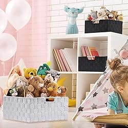 Sorbus Storage Box Woven Basket Bin Container Tote Cube Organizer Set Stackable Storage Basket Woven Strap Shelf Organizer Built-In Carry Handles (White)