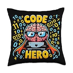 Code Hero design featuring a cute brain with glasses and a laptop, perfect for programmers, coders, and tech enthusiasts. Ideal for those who love coding, superheroes, and adorable designs. Great for work, casual outings, or as a fun gift for friends and c Perfect for programmers, coders, developers, and tech lovers. Great for birthdays, Christmas, Father's Day, Mother's Day, or any occasion. Ideal gift for men, women, and kids who love coding, brains, and superhero themes. Celebrate your love for coding and 100% spun-polyester fabric Double-sided print Filled with 100% polyester and sewn closed Individually cut and sewn by hand Spot clean/dry clean only