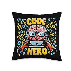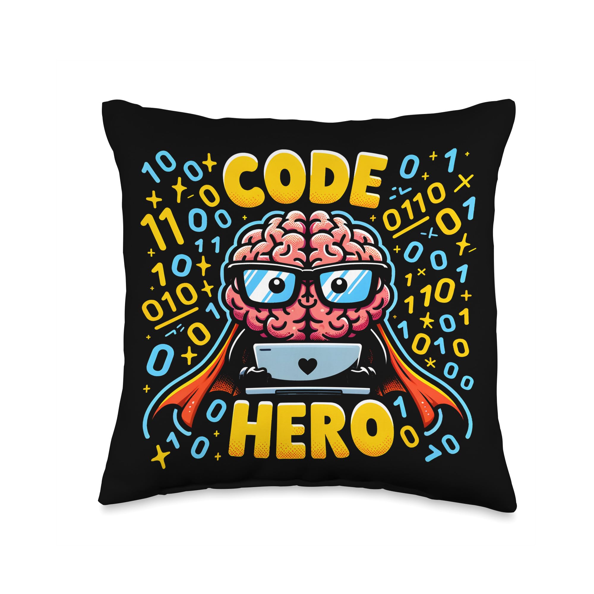 100% Polyester Code Hero design featuring a cute brain with glasses and a laptop, perfect for programmers, coders, and tech enthusiasts. Ideal for those who love coding, superheroes, and adorable designs. Great for work, casual outings, or as a fun gift for friends and c Perfect for programmers, coders, developers, and tech lovers. Great for birthdays, Christmas, Father's Day, Mother's Day, or any occasion. Ideal gift for men, women, and kids who love coding, brains, and superhero themes. Celebrate your love for coding and 100% spun-polyester fabric Double-sided print Filled with 100% polyester and sewn closed Individually cut and sewn by hand Spot clean/dry clean only
