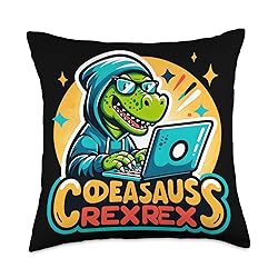 Codeasaurus Rex Cute Dinosaur Programmer Design Throw Pillow