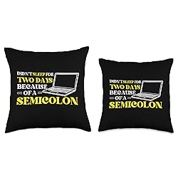 100% Polyester Do you love to write codes? Best gift idea with a quote "Didn't Sleep For Two Days Because Of A Semicolon" for programmers and software developers. Cute present for computer lovers and fans who loves to use HTML and JavaScript 100% spun-polyester fabric Double-sided print Filled with 100% polyester and sewn closed Individually cut and sewn by hand Spot clean/dry clean only