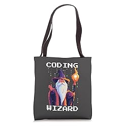 Pixel Coder Coding Wizard 8-Bit Design Gifts For Coders, Programmers, and Developers, For Birthdays, Christmas, Thanksgiving, New Year, Valentine's Day, Anniversary, Baby Showers, Gender Reveal Parties, Father's Day, Mother's Day, and More Cool Present Idea For 8-Bit Pixelart Coders. Get it For Your Magical Wizard Wife, Husband Girlfriend, Boyfriend, Mom For Mother's Day, Father, Dad Daughter, Colleague, Teacher, Bonus Mom, Stepmom, Stepmother. and more 16” x 16” bag with two 14” long and 1” wide black cotton webbing strap handles. Made of a lightweight, spun polyester canvas-like fabric. All seams and stress points are double-stitched for durability, and the reinforced bottom flattens to fit more items and hold larger objects. Spot clean/dry clean only.