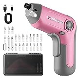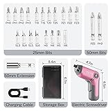 WORKPRO Electric Cordless Screwdriver with Offset Driving Shaft, 3.6V Automatic Rechargeable Screw Driver with 22PCS Bits, Battery Powered Automatic Screw Gun with LED Light & Carry Case - Pink Ribbon