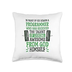 In Front Of You Stands A Programmer Who Has Retired The Talent Of Looking Awesome From God Himself Great programmer design for men and women programming. If you are searching for computer coding or computer coder this is for you. 100% spun-polyester fabric Double-sided print Filled with 100% polyester and sewn closed Individually cut and sewn by hand Spot clean/dry clean only