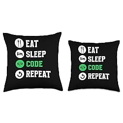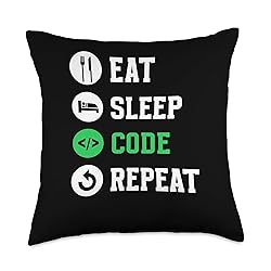 Eat Sleep Code Repeat Sayings Programmer Coder Coding Throw Pillow