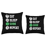Eat Sleep Code Repeat Programmer Coder Sayings Coding Throw Pillow