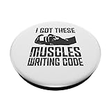 Funny Programming design in retro design showing finger muscles built due to coding for long hours. Funny Programming Design for programmers, developers, software engineers, and coders. I got these muscles writing code. Perfect design with humor for programmer geeks, coding nerds, data scientists, coders, and software developers. Adhesive backing attaches the PopGrip to your case or device. Will not stick to silicone, leather, waterproof, or highly textured cases. Works best with smooth, hard, plastic cases. Not compatible with wireless charging Printed top is swappable with other compatible PopGrip models. Just press flat, turn 90 degrees until you hear a click and remove to swap.