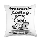 100% Polyester Procrasti-Coding Funny Coding Programer Developer, great for developers and programmers, this funny software engineer design is perfect for cat and coding lovers Ideal for software engineers, this humorous design highlights the fun side of programming and is perfect for developers who enjoy a good laugh. 100% spun-polyester fabric Double-sided print Filled with 100% polyester and sewn closed Individually cut and sewn by hand Spot clean/dry clean only