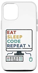 Computer Enthusiast Distressed Retro Design with PC sign for software engineer and technology geek! "Eat Sleep Code Repeat" funny sarcasm vintage design for css & html nerds! Two-part protective case made from a premium scratch-resistant polycarbonate shell and shock absorbent TPU liner protects against drops Printed in the USA Easy installation
