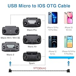 1FT+ 0.5FT(2 pack) USB Micro to iOS DJI Remote Controller Cable for DJI Mavic Mini(1st Gen), Mini SE, Mavic Pro, Spark, 2 Pro Zoom, Mavic Air,Platinum, Phone/Tablet 90 Degree Data OTG Cord Accessories