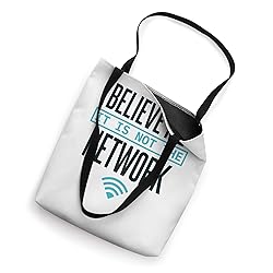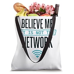 Believe Me It Is Not The Network Great computer engineer design for men and women computer engineering. If you are searching for coder programmer or software developer this is for you. 16” x 16” bag with two 14” long and 1” wide black cotton webbing strap handles. Made of a lightweight, spun polyester canvas-like fabric. All seams and stress points are double-stitched for durability, and the reinforced bottom flattens to fit more items and hold larger objects. Spot clean/dry clean only.