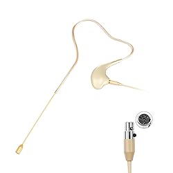 KIMAFUN Headset/Headworn Microphone Single Earset Ear-hook Over Ear Hanging Condenser Mic Compatible with Shure Wireless System Bodypack Transmitter, Ideal for Performance, Theater, Lecture - Beige D4