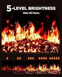 Effortless Room Heating: Our electric fireplace quickly heats up your entire room with 1400W of power, providing cozy and consistent warmth for your living space during colder winter months or chilly summer evenings. Realistic 3D Flames: Enjoy the beauty of realistic 3D flames that can enhance the ambiance of any room. The electric fireplace features customizable warmth with 62°F to 82°F temperature control and 5 brightness settings to offer a personalized fireplace heater experience. Best of all, you can control the settings without having to open the door, adding convenience and comfort to your space. Control Anywhere, Anytime: The electric fireplace can be controlled by using the downloadable app or with the included remote (batteries included).Whether you are home or away, you can adjust settings to turn the fireplace on or off or change flame brightness, ensuring operation flexibility from anywhere. Additional Security Features: The fireplace heater is equipped with security features including overheating protection, child lock, and automatic shutdown if the fireplace is tilted more than 45 degrees, providing peace of mind for you and your family. Low Noise & Energy-Saving: The corner fireplace operates at a whisper-quiet level of 37 dB to maintain a peaceful, distraction-free environment. The convenient timer function allows you to schedule the electric fireplace to operate for a duration between 1-8 hours for more energy savings.