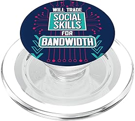 Will Trade Social Skills For Bandwidth Funny Coder Gamer Quote. Perfect for computer programmers, software engineers, and tech geeks who love coding and prefer bandwidth over social interactions. Programmer Gamer Coding Nerd Funny Tech Humor. Great for funny gamers, and IT Technicians, who enjoy funny tech quotes related to their hobbies. Magnetically snaps on and off your phone case so you can easily swap between MagSafe compatible accessories. Adaptor ring included. Make any phone case MagSafe compatible by attaching the adaptor ring. A phone case is required but not included to use the wallet. Printed top is swappable. Close and twist to swap the top with a new design with other compatible PopGrip models.