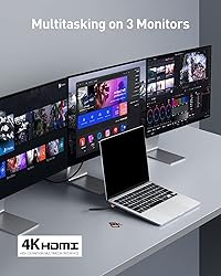 - Baseus Laptop Docking Station, 4K Multitasking Docking Station with 2 HDMI+DP, PD, 3 USB-A, RJ45, Audio, TF/SD Card Reader, USB Hub Compatible for MacBook/Dell/HP/Surface/Lenovo