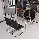 Hilknen Glass Dining Table Set for 4, Modern Rectangle Dining Table Set for 4, Glass Kitchen Table and Chairs Set for 4 Suitable Living Room,Kitchen,Small Apartment