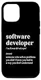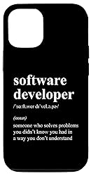 Funny coding design with a funny definition of a software developer: someone who solves problems you didn’t know you had in ways you can’t understand. Perfect for software developers, computer programmers, coders, IT professionals, tech enthusiasts. The ultimate gift for the software developer in your life! This design is ideal for birthdays, Christmas, Programmer’s Day or any special occasion. For computer programmers that love programming, debugging, fixing bugs. Programmer coder coding funny gift. Two-part protective case made from a premium scratch-resistant polycarbonate shell and shock absorbent TPU liner protects against drops Printed in the USA Easy installation