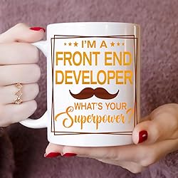 - Front End Developer 11oz White Ceramic Mug: Monizilucky creates unique funny coffee mugs which make great Birthday gift ideas for men, Birthday gift ideas for women, Valentine’s Day gift ideas, Mother’s Day gift ideas for Mom from Daughter or Son, Father’s Day gift ideas for Dad, Anniversary gift and Christmas present ideas for him or her. This funny coffee mug is made out of high quality ceramic. If you're shopping for a gift, you've found the one. Have a great gift delivered to their door, on-time in a nice gift box. This is the perfect mug for you or for someone you want to bring a smile to. A perfect size mug you can drink tea, soup or coffee out of. ● Printed in the USA ● Worldwide shipping ● Print type: Sublimation printing ● Material: Ceramic ● Color: White ● Sizing: 11oz ● Printed on both sides.